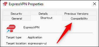 将出现应用程序的属性菜单。如果您从文件资源管理器中的 EXE 文件打开应用程序的“属性”菜单,您将位于“常规”选项卡中。如果您从桌面快捷方式打开它,您将进入快捷方式选项卡。