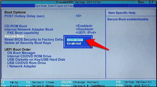 - 然后转到“安全”选项卡,您应该会看到“安全启动”选项。将其状态更改为 Disabled,然后保存更改。