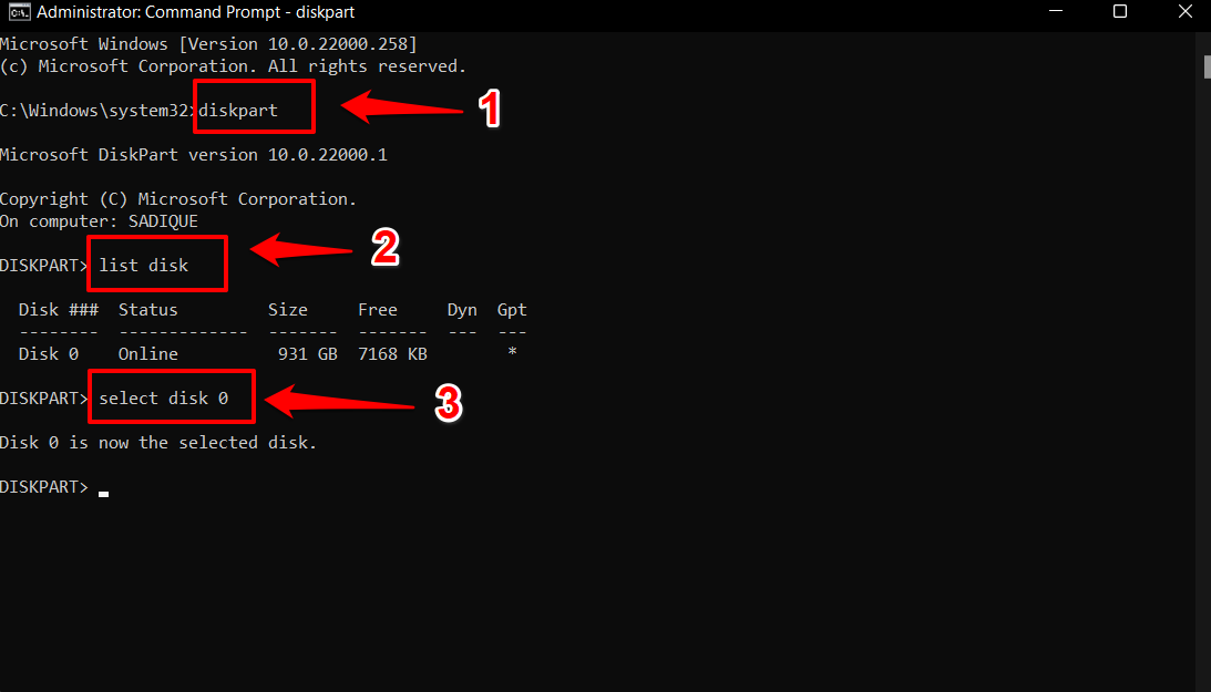 diskpart list disk