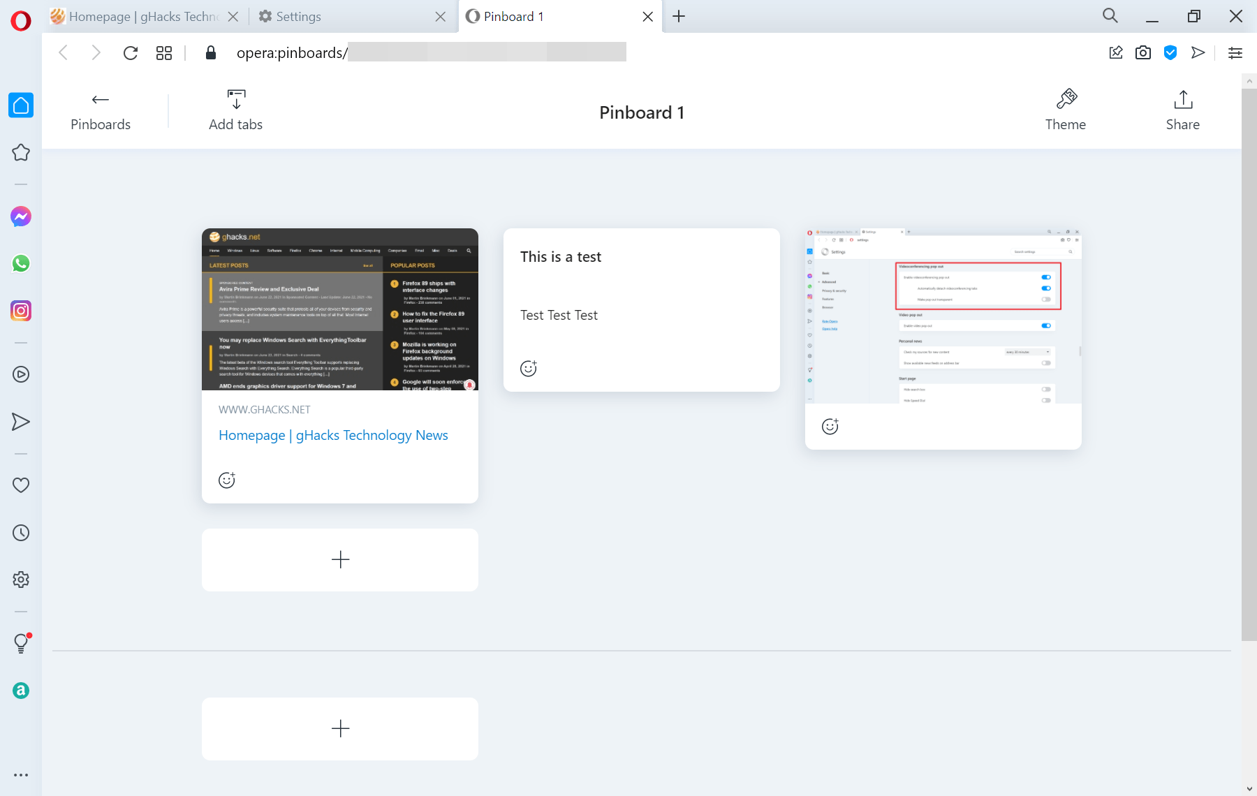 新 Opera 浏览器的第二个新增功能是 Pinboards。顾名思义,它使您能够在浏览器中创建链接、图像和文本的集合。