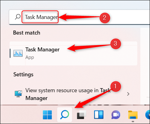 要找出您使用管理权限运行的进程,您需要在任务管理器中显示一个默认隐藏的特殊列。要显示此列,请继续打开任务管理器。您可以通过按 Ctrl+Shift+Esc 键盘快捷键来执行此操作,或者单击 Windows 任务栏中的搜索图标,在搜索框中键入“任务管理器”,然后单击搜索结果中的任务管理器应用程序。