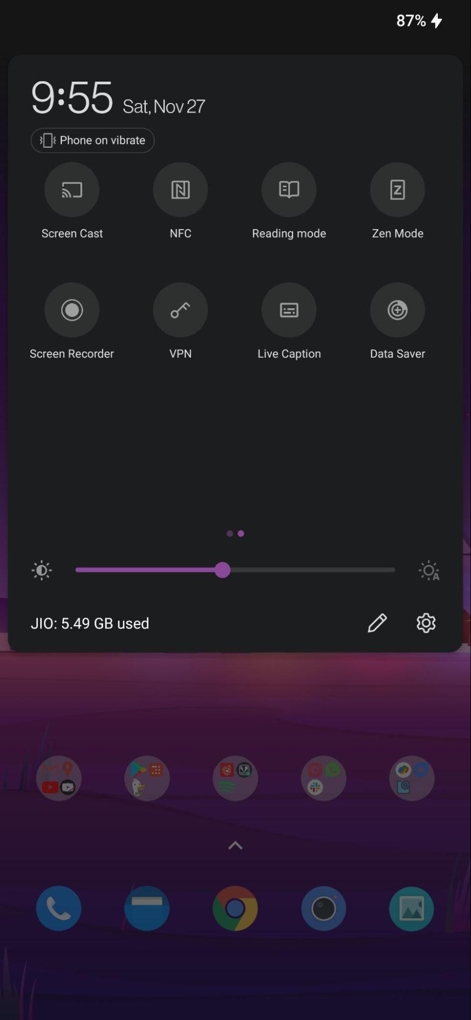 - 现在,您可以前往智能手机并在手机的主屏幕上向下滑动以打开“快速设置”菜单。