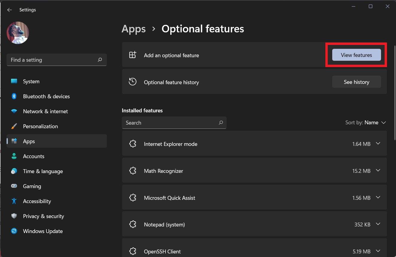 - 您需要单击位于顶部添加可选功能旁边的查看功能按钮。