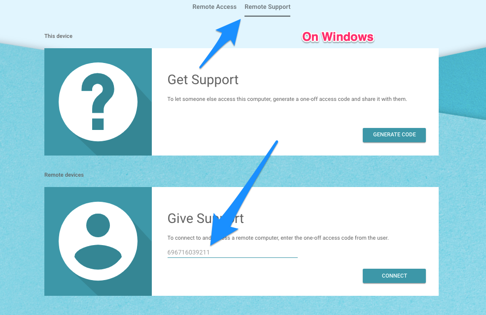 #11. 现在在 Windows 中,打开远程支持选项卡并输入您在 Mac 上生成的访问代码。