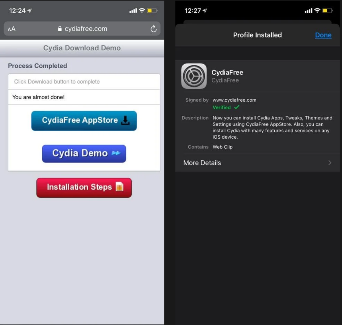 - 在您的 iOS 设备上访问 CydiaFree.com并下载 Cydia。