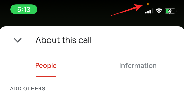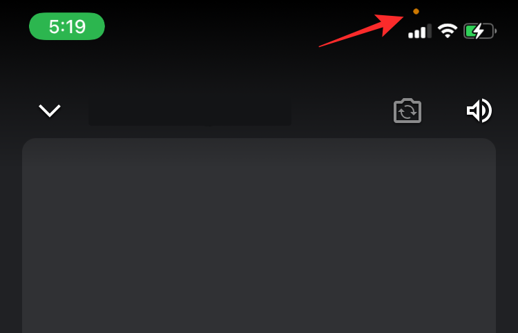 但是,当您在同一通话中关闭对摄像头的访问时,绿点将变为黄/橙点,表示该应用程序目前只能访问 iPhone 的麦克风。