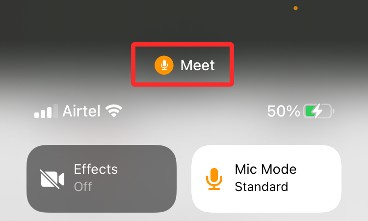 当控制中心加载时,您应该能够在顶部中心看到一个带有麦克风图标的橙色圆圈。除了这个图标,您还可以看到当前访问 iPhone 麦克风的应用程序的名称。