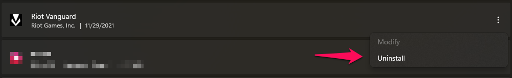 您必须从机器上卸载 Valorant 或 Riot Games 开发的游戏并重新安装。我这样做是为了我的工作,我相信你可以做到,因为我把我的优先事项放在了列表的首位。
