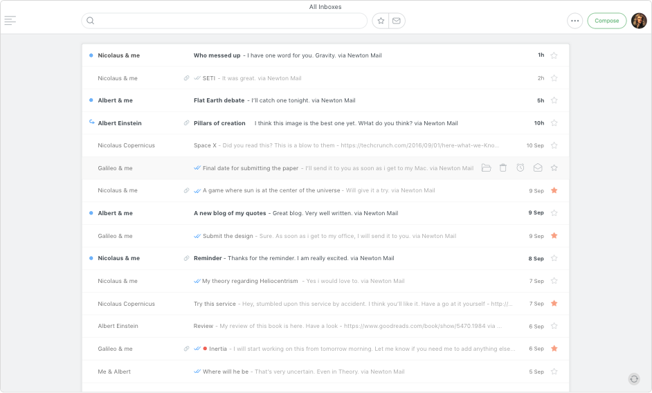 它为您提供了类似即时消息的界面,并摒弃了通常的电子邮件界面。可以选择从亮模式切换到暗模式,有内置翻译器、拖放功能、自定义滑动操作等。此外,当您开始使用它时,您还会遇到其他功能。
