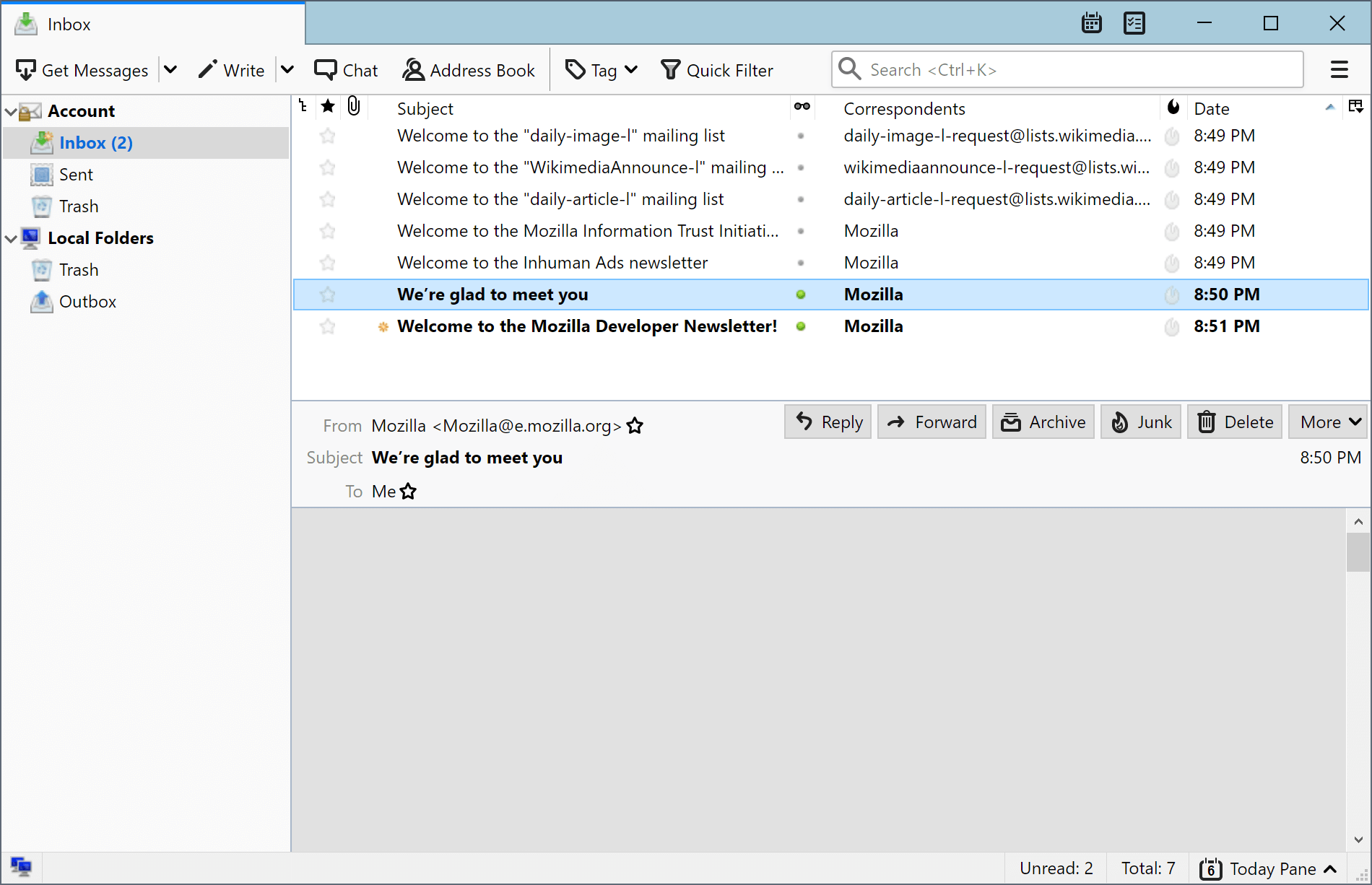 另一个拥有大量急需功能的免费电子邮件客户端是 Thunderbird。它由 Mozilla 开发,Mozilla 与开发 Mozilla Firefox Web 浏览器的公司是同一家公司。这款邮件客户端简单易用,界面简洁,新手也能轻松上手。您可以附加和管理您的任何自定义电子邮件或流行的网络邮件服务,包括 Gmail、Outlook 等。
