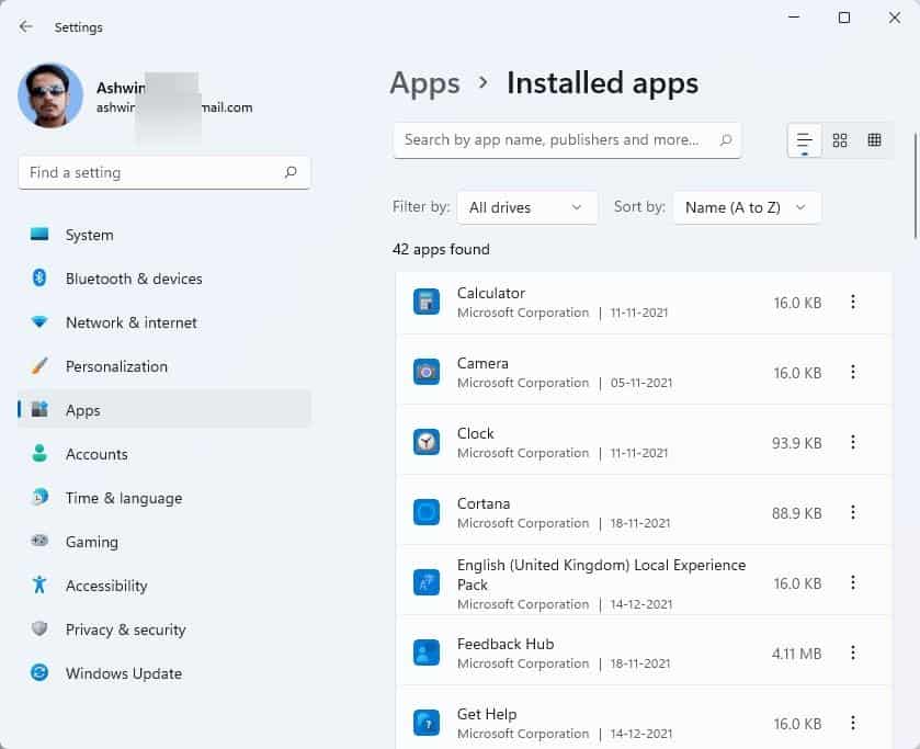 微软正在远离控制面板。当您单击旧工具中的“程序和功能”选项时,它现在将打开“设置”应用程序,更具体地说是此页面,“设置”>“应用程序”>“已安装的应用程序”。右键单击“开始”菜单中的项目并选择“卸载”,打开“已安装的应用程序”页面。